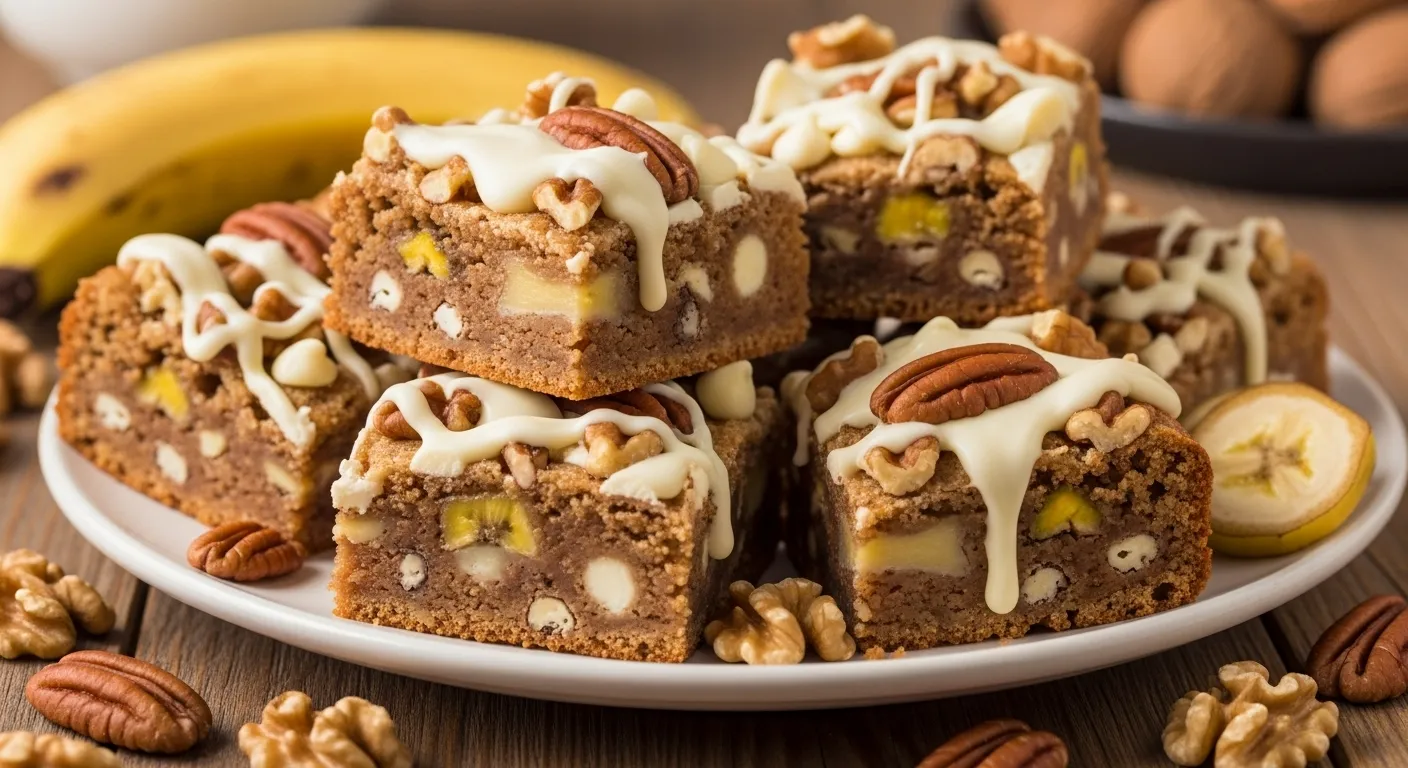 바나나 블론디 (Banana Blondies) - 고소한 화이트 초콜릿과 견과류