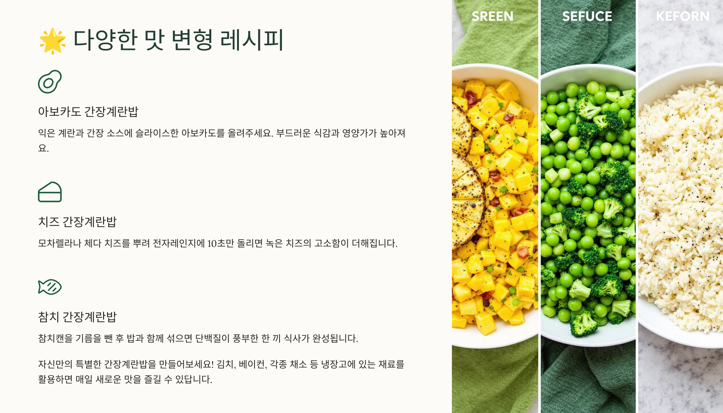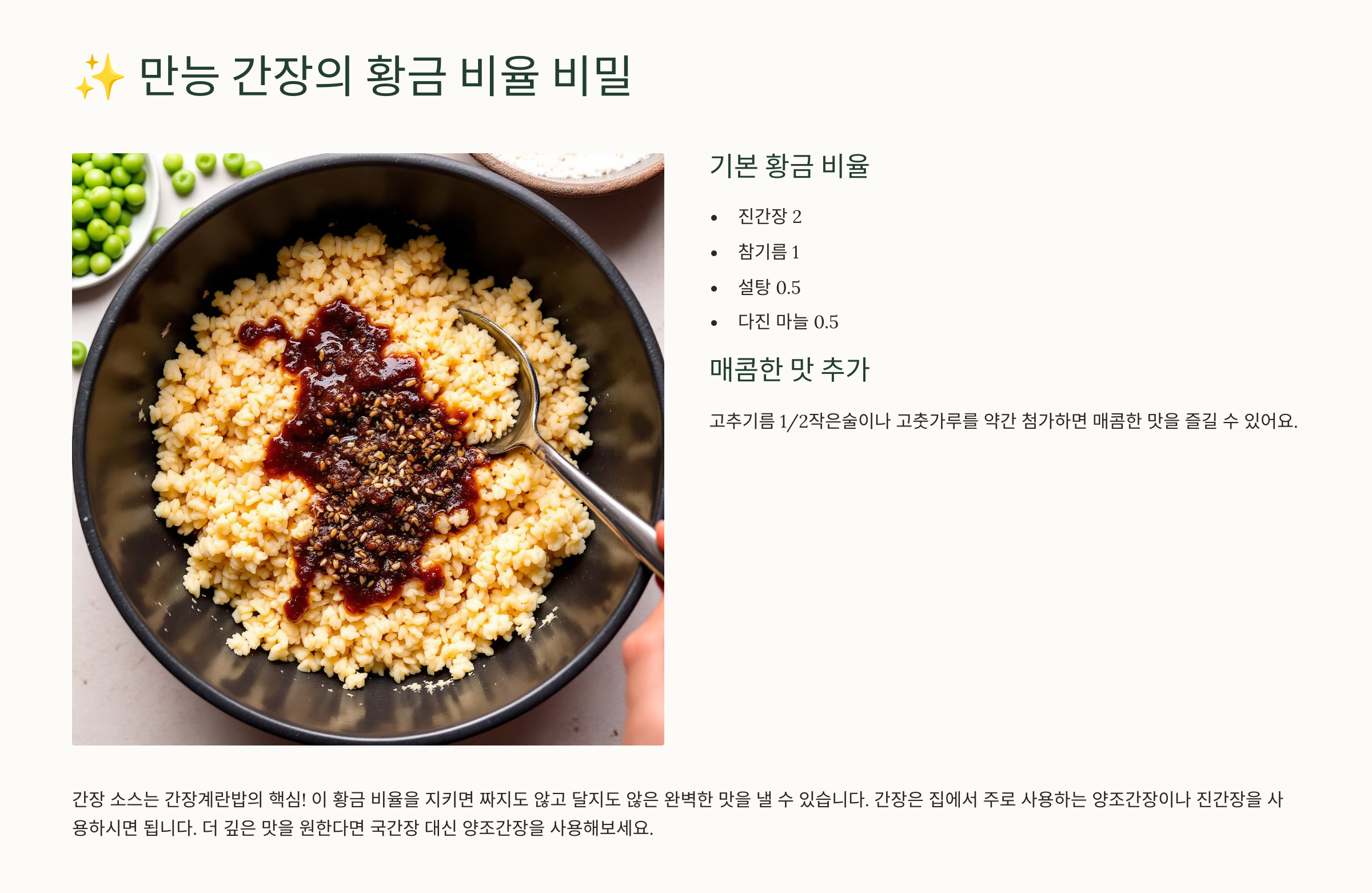 간장계란밥은 그저 간장과 계란만 넣는다고 다가 아니죠. 제대로 된 비율과 작은 팁만 알아도 고급진 한 끼 식사가 된답니다. 계란의 완벽한 익힘 정도부터 간장의 황금 비율, 그리고 고소함을 극대화하는 비법까지! 지금부터 모든 노하우를 공개할게요. 이 레시피 하나면 이제 더 이상 고민할 필요 없어요!