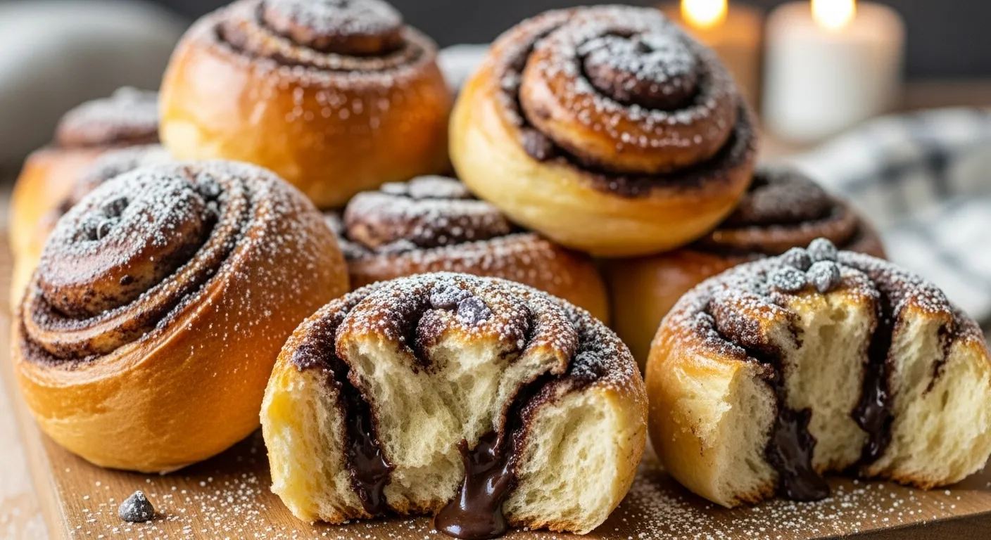 완성된 초콜릿 브리오슈 번은 겉은 살짝 쫄깃하고 속은 촉촉하게 부풀어 있어요. 초코칩이 녹아 반죽 속에 스며들며 진한 풍미를 더해줘요.