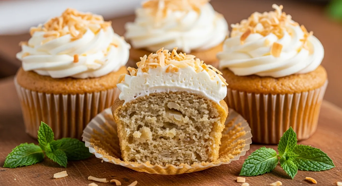 완성된 컵케이크는 부드럽고 촉촉한 질감에 고소한 코코넛 향이 은은하게 퍼져요. 위에 올린 코코넛 요거트가 크림처럼 부드럽게 감싸주고, 시나몬의 향이 한층 깊은 풍미를 더해줘요.