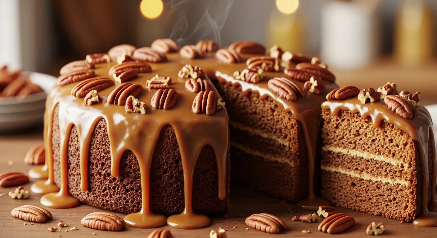 스파이스 케이크는 계피, 정향, 넛맥 등 따뜻한 향신료가 어우러진 달콤하고 촉촉한 디저트예요. 여기에 진한 카라멜 글레이즈와 고소한 피칸을 얹어 풍미를 한층 끌어올린 레시피랍니다. 부드러운 케이크와 바삭한 견과류의 조합이 매력적이라 티타임이나 손님 초대용 디저트로도 잘 어울려요.