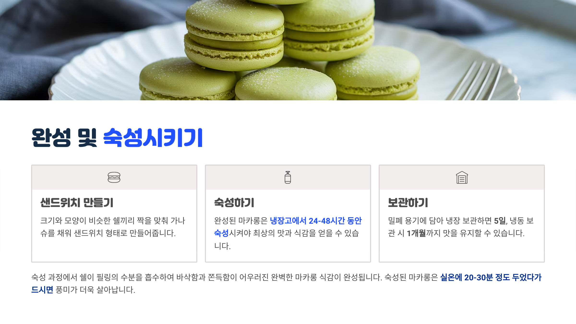 A7. 숙성하면 꼬끄와 필링이 어우러져 맛이 깊어지니 하루 정도 두는 게 좋아요.